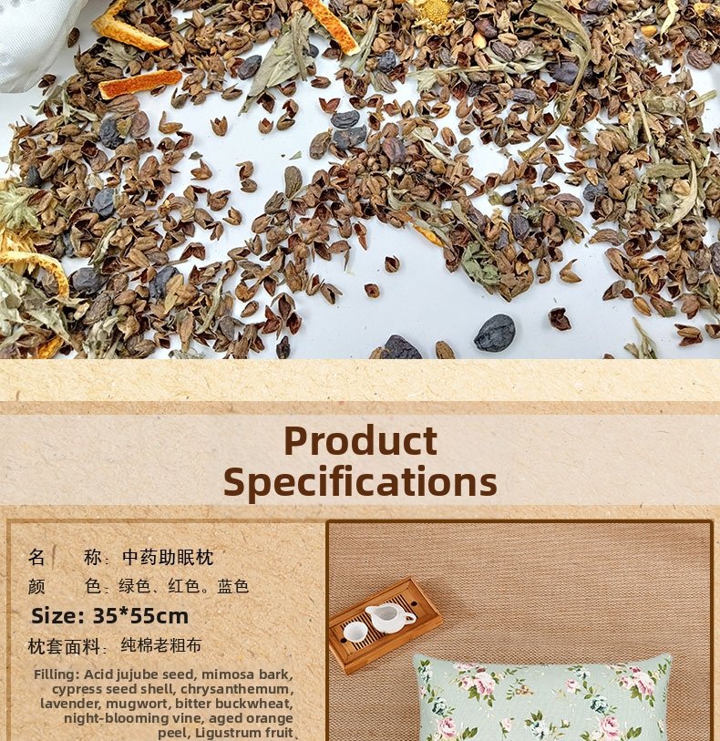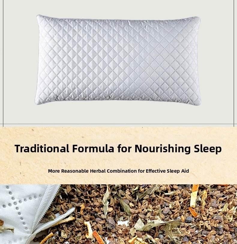 This pillow is stuffed with 18 carefully selected Chinese herbal medicines, including cassia seed, buckwheat, lavender and mugwort. It weighs approximately 2.5kg (5 catties), providing gentle pressure to support the cervical spine, while the natural herbal aroma helps calm the mind and promote deep sleep.
